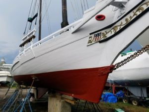 Now, I’ll be the first to acknowledge that I can’t really afford to cruise on a fifty-foot vessel no matter how much it’s a work of art and sexy as hell. Adding in the fact that the sparred length is a whopping 65′ and that’s just going to make haul-outs, marina visits, and incidental cruising expenses a lot more than I can afford.